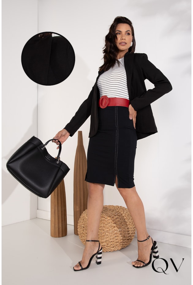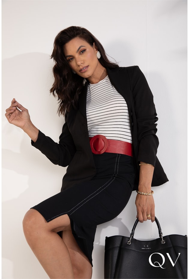 BLAZER EM ALFAIATARIA ACINTURADO PRETO - HAPUK