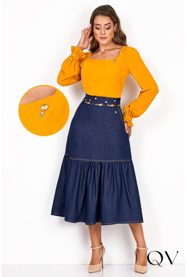 BLUSA CREPE PREMIUM MOSTARDA - VIA TOLENTINO