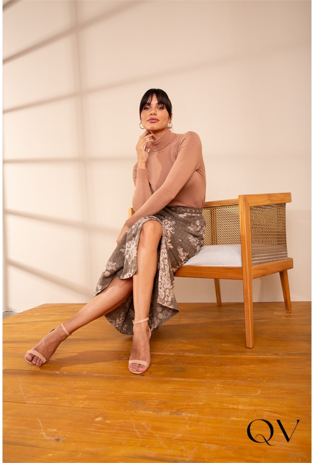 BLUSA EM TRICOT GOLA ALTA NUDE - LEKAZIS