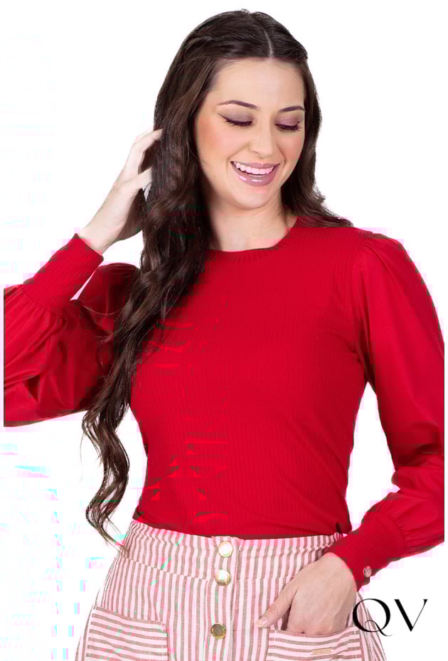 BLUSA MALHA CANELADA VERMELHO - HAPUK