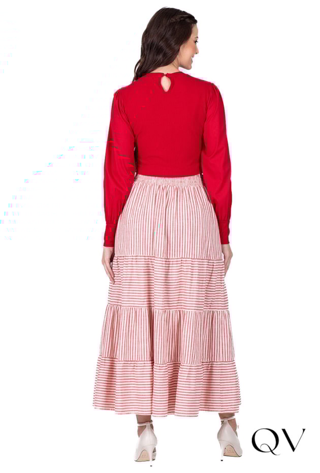 BLUSA EM MALHA CANELADA DECOTE EM V VERMELHO - LUZIA FAZZOLLI