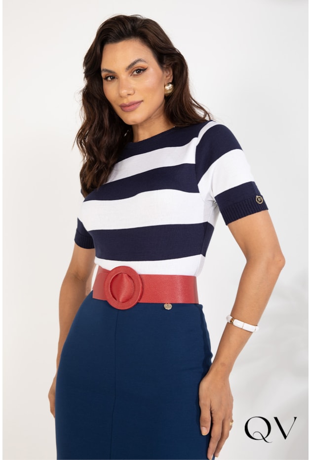 BLUSA TRICÔ LISTRADA MARINHO - LEKAZIS