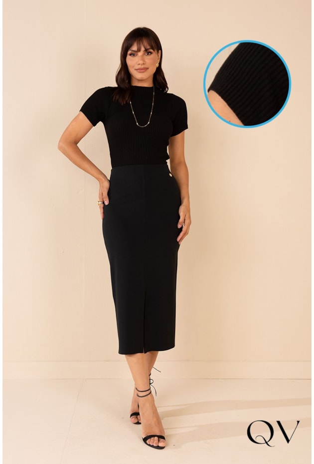 BLUSA EM TRICOT VISCOSE GOLA ALTA PRETO - LEKAZIS