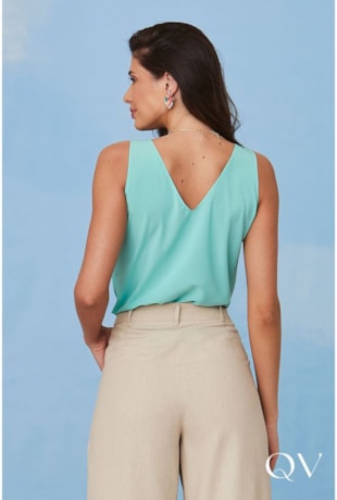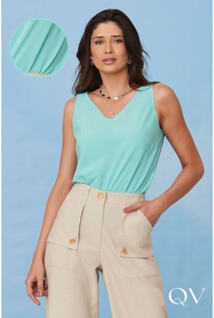 BLUSA REGATA CREPE DECOTE V VERDE ÁGUA - LUZIA FAZZOLLI