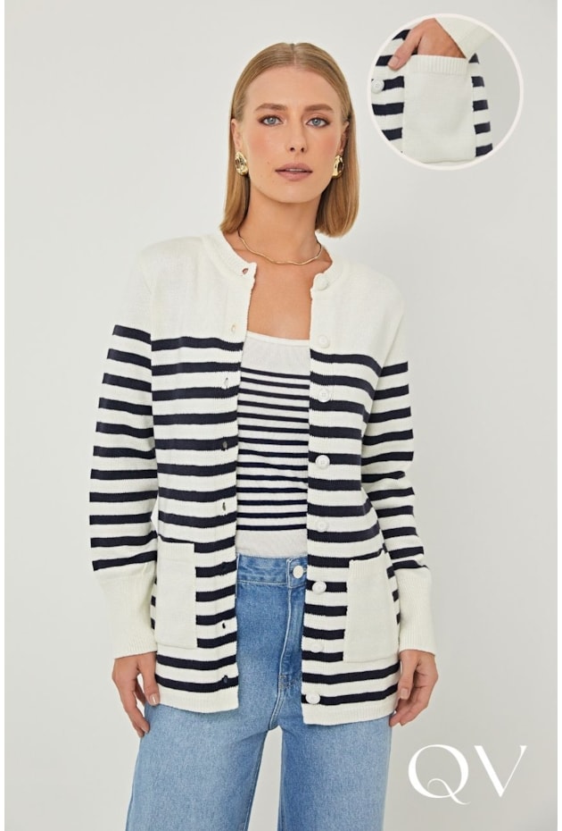 CASACO EM TRICOT LISTRADO OFF WHITE - LINDA DE MORRER