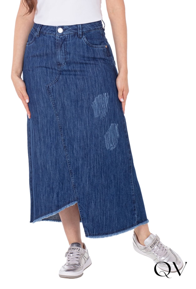 SAIA EM JEANS BARRA ASSIMÉTRICA AZUL ESCURO - HAPUK