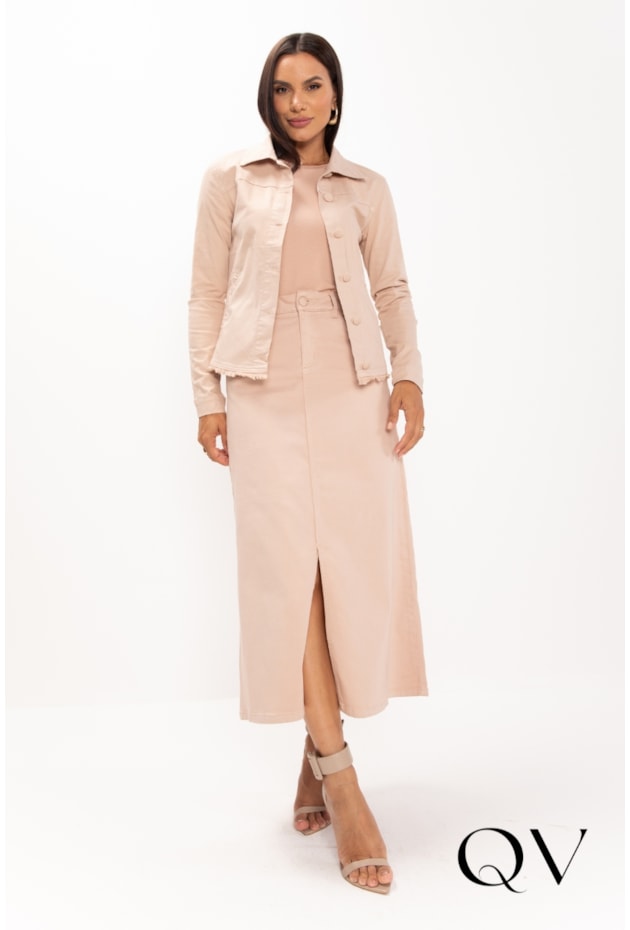 SAIA EM JEANS COM FENDA FRONTAL NUDE - LEKAZIS