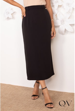 SAIA MIDI EM ALFAIATARIA PRETO - LEKAZIS