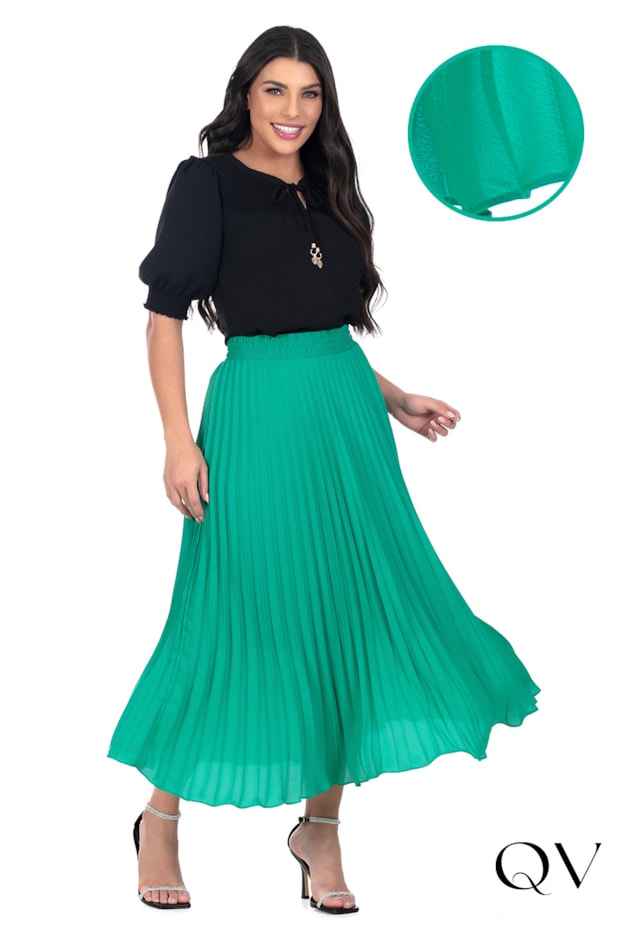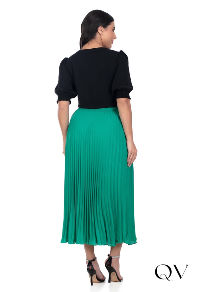SAIA PLISSADA MAXI MIDI VERDE - HAPUK