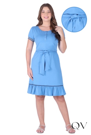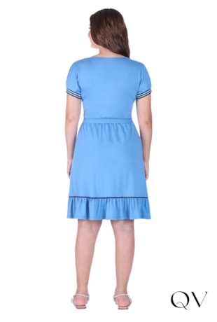 VESTIDO EM MALHA COM PUNHO EM RIBANA AZUL - HAPUK