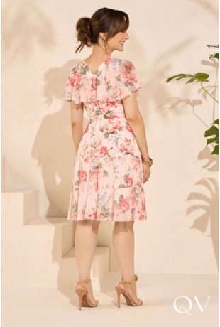 VESTIDO EM CHIFFON COM TOQUE DE SEDA FLORAL ROSA - JANY PIM