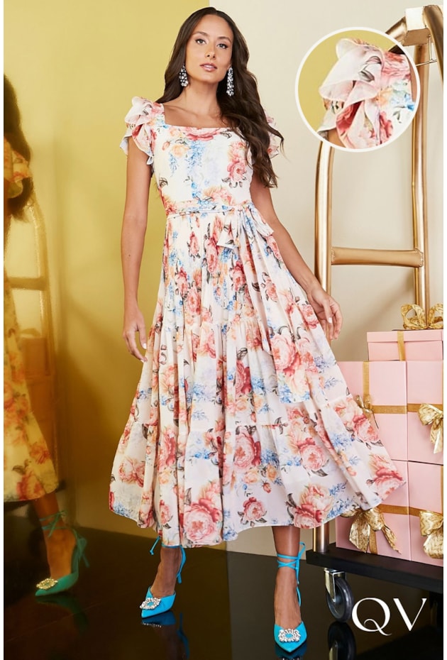 VESTIDO MAX MIDI EM CHIFFON TOQUE DE SEDA FLORAL ROSA - JANY PIM