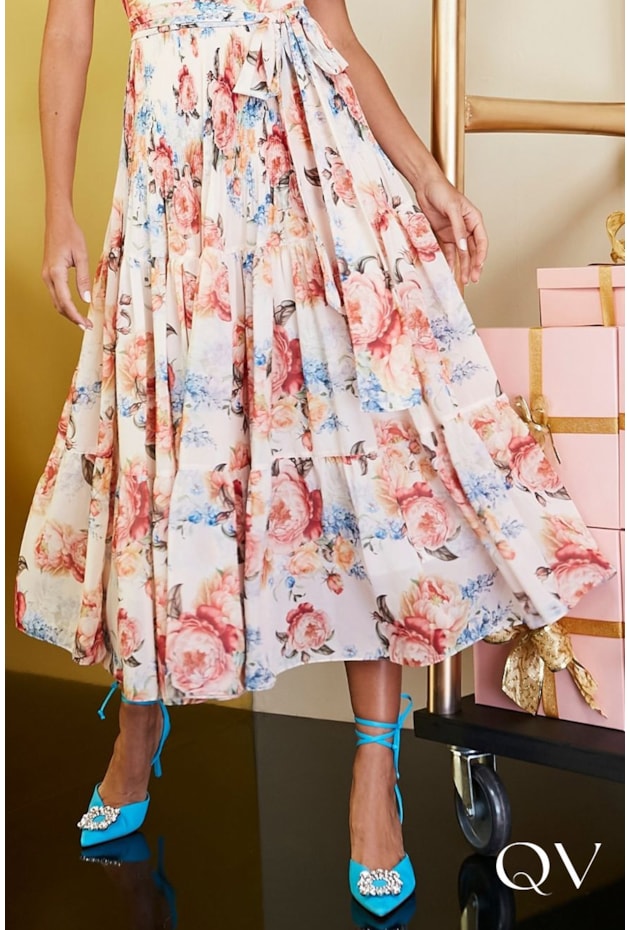 VESTIDO CHIFFON EM TOQUE DE SEDA FLORAL - JANY PIM