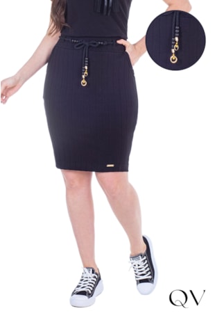 SAIA EM MALHA CANELADA PONTEIRAS PRETO - HAPUK
